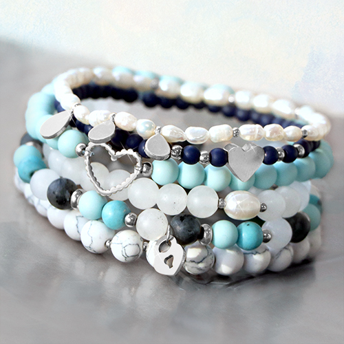 Pierres naturelles Calcédoine (Quartz) et Agate ovale 6mm Bleu océan opal