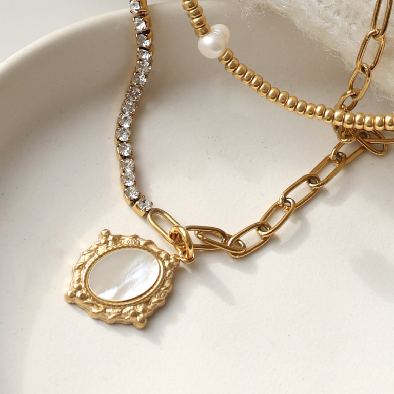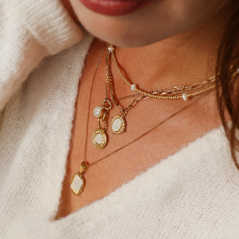 Ces magnifiques breloques en acier inoxydable doré et argenté nacrées sont disponibles dans différentes formes. Combinez-les avec une chaîne jasseron, des perles d'eau douce et des perles de rocaille Miyuki pour obtenir des colliers tendance que vous pourrez porter avec les bagues assorties. Succès garanti !