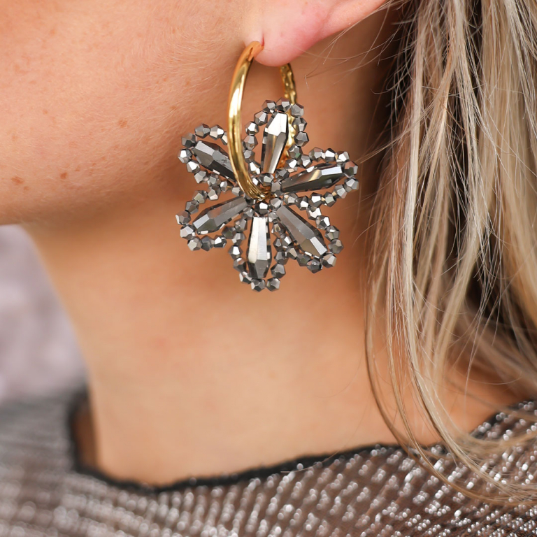 • Pendentifs facettées fleur Anthracite métallique