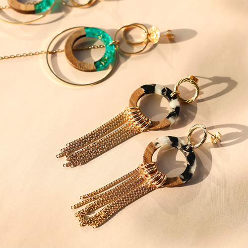 Cette nouvelle collection de pendentifs en bois avec résine allie charme naturel et design scintillant ! Choisissez parmi différentes formes et associez-les à des anneaux fermés DQ, chaînes jaseron, boucles d’oreilles ou gouttes en pierres naturelles pour des boucles d’oreilles uniques. Nature et couleur : une combinaison parfaite pour vos créations !