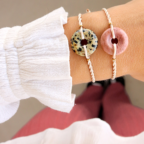 Fan de bijoux tendance au look unique ? Alors, vous allez adorer vous lancer avec les tous nouveaux pendentifs disques en pierre naturelle. Ces pendentifs disques en pierre naturelle donnent à vos bijoux un look exclusif avec un effet de surprise absolu. Vous pouvez enfiler les pendentifs disques en pierre naturelle sur un apprêt de boucle d’oreille telle qu’une créole en acier inox et les boucles d’oreille sont prêtes. Ou utiliser du jaseron en le faisant passer sur la pierre naturelle et en le fixant à l’œillet de la boucle d’oreille. Vous pouvez ainsi facilement ajouter une touche exclusive aux boucles d’oreilles. Vous pouvez créer de magnifiques bracelets avec du fil satin. Prenez deux morceaux de fil et torsadez ou nouez-les à votre guise sur le pendentif. Fermez le bracelet avec un nœud coulissant. Amusez-vous bien grâce à ces conseils et ces sources d'inspiration !