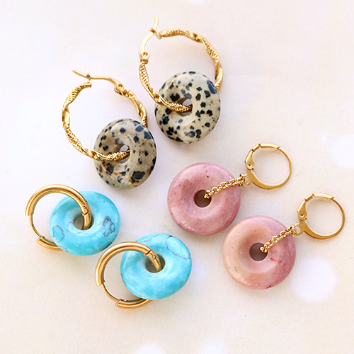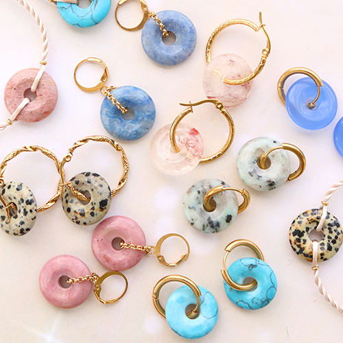 Découvrez ici comment confectionner de superbes boucles d’oreilles et bracelets avec des pendentifs disques en pierre naturelle