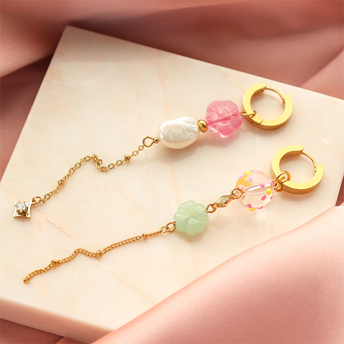 Pour concevoir des boucles d’oreilles, utilisez une variété de perles de la collection telles que des perles en verre peint à la main, perles d’eau douce et pierres naturelles facettées que vous reliez à l’aide de clous à tête ronde. Servez-vous de connecteurs et de jaseron pour des boucles d’oreilles extra-longues ! Accrochez ces chaînes à différentes créoles. Créez une lanière de téléphone tendance composée pour la moitié de jaseron et pour l’autre moitié de perles que vous enfilez sur un fil macramé.