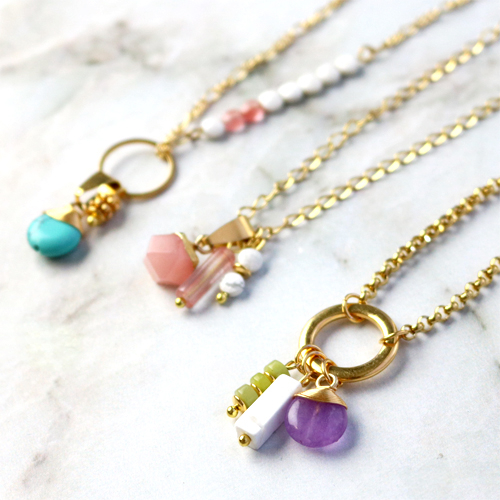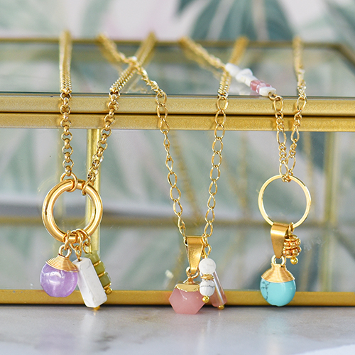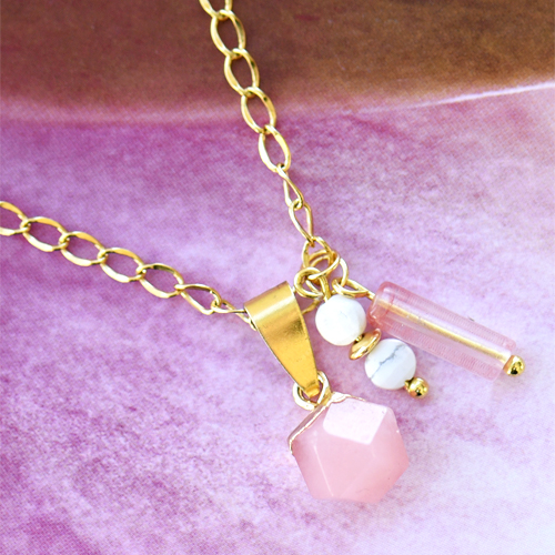 • Pierres naturelles pendentifs hexagone Rose clair-doré