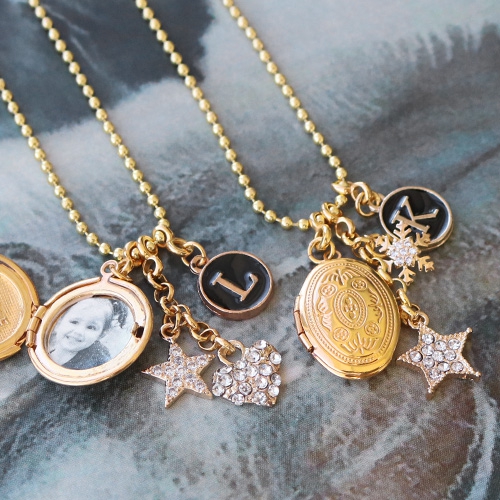 Créez de magnifiques colliers fantaisies avec des médaillons, du strass et des perles alphabet.