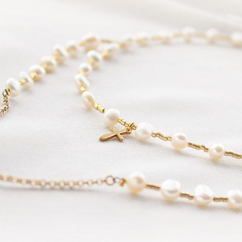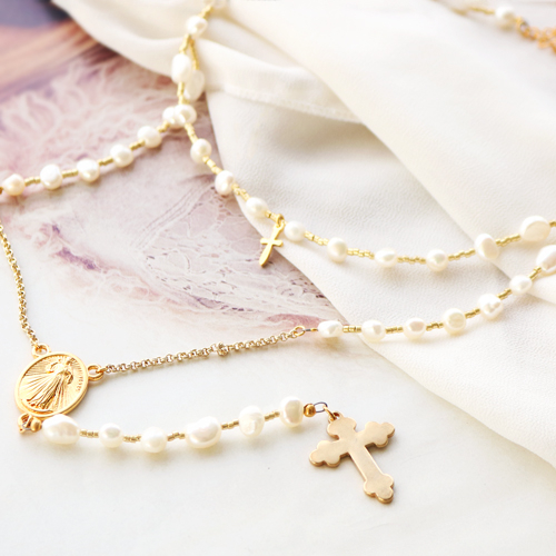 Créez des bijoux fantaisies pour des moments spéciaux à célébrer ou à retenir ! Avec des symboles religieux vous pouvez créer de magnifiques bijoux pour des événements spéciaux tels qu’un baptême, la première communion, la confirmation ou le mariage ! Pour vous inspirer, nous avons créé une belle parure de bijoux avec des breloques en métal DQ doré et des perles d'eau douce. Avec ces articles, vous pouvez également créer de magnifiques bracelets et colliers de style chapelet avec des breloques religieux.
