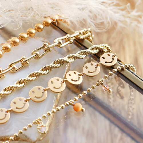 Ces chaînes maille jaseron en métal DQ sont parfaites pour la création de bracelets. Coupez les chaînes à la bonne taille et fixez un fermoir et une chaîne d’extension. Créez des breloques vous-mêmes avec des perles facettées, des pendentifs en verre Crystal Glass ou des perles d’eau douce que vous accrochez à votre bracelet à l’aide d’un anneau ouvert. Ou bien réalisez un connecteur avec un clou à tête ronde et vos perles favorites. Connectez celui-ci ensuite aux boucles du sémi-bracelet en métal DQ. De cette façon vous créez simplement et rapidement un bijou magnifique !