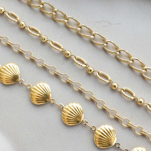 • Apprêts en acier Inox chaîne maille jaseron avec barre Doré-jaune