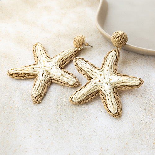 • Boucles d'oreilles en raphia accroche-regard étoile de mer Beige-marron clair-doré