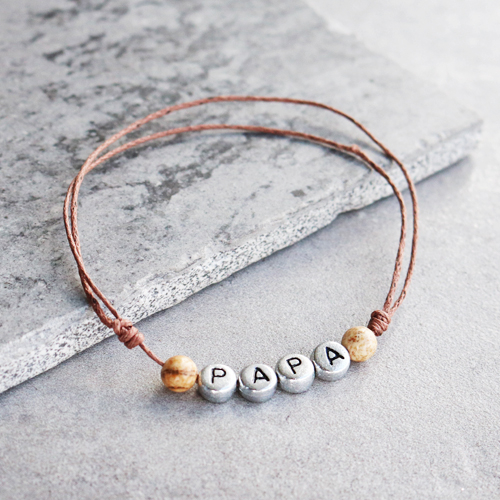 C’est bientôt la Fête des Pères, le jour où nous mettons tous les super-papas sous les feux de la rampe ! Il va de soi que vous voulez que votre collection soit truffée de bijoux sympas à offrir pour cette occasion. Confectionnez les plus beaux bijoux pour hommes avec des perles en pierre naturelle et des perles en coco. Ces perles donnent aux bijoux un aspect cool et naturel. Vous pouvez enfiler les perles sur un élastique ou vous pouvez choisir d’utiliser du cordon en coton ciré ou du fil macramé. Vous pouvez ainsi facilement créer les bracelets les plus cool. Vous souhaitez ajouter une touche personnelle aux bijoux ? Ajoutez-y des perles alphabet et confectionnez par exemple un bracelet avec les lettres « papa ». Astuce : appliquez un peu de colle au bout du cordon en coton ciré pour pouvoir y enfiler plus facilement les perles.