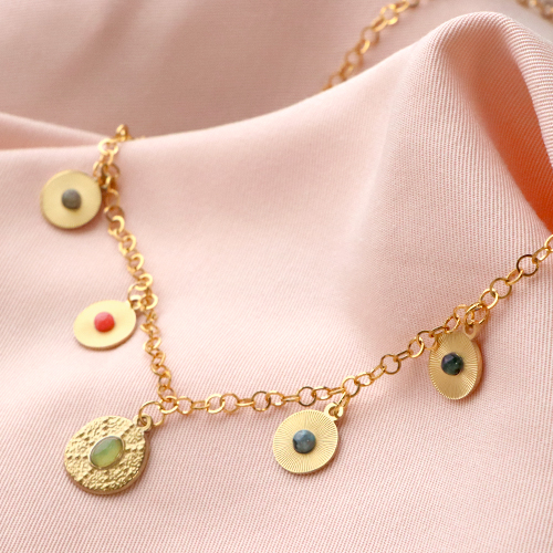 Dans ce set d’inspiration nous vous montrerons que vous pouvez réaliser de jolis bijoux avec peu d’articles. Choisissez une chaîne maille jaseron et un joli fermoir tel un fermoir T et attachez les breloques à la chaîne à l’aide d’un anneau ouvert. Ainsi, vous créez tout simplement de jolis colliers et bracelets. Pour réaliser des boucles d’oreilles assorties, vous pouvez choisir des boucles d’oreilles parmi les apprêts et les combiner avec les breloques.