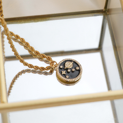 Métal TQ laiton breloques émaillées lune Doré-noir