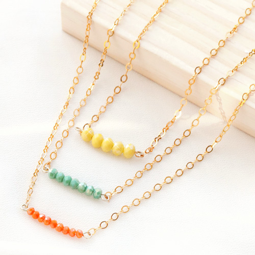 Laissez-vous inspirer par notre nouvelle collection de perles à facettes ! Ces perles polyvalentes sont idéales pour la fabrication de n’importe quel bijou ! Des bracelets, des chaînes de cheville, des colliers ; avec les perles à facettes vous pouvez créer de magnifiques bijoux fantaisies. Nous avons crée des colliers avec de la chaîne maille jaseron en métal DQ et des perles à facettes enfilées sur un clou à tête ronde. Vous pouvez également enfiler quelques perles à facettes sur du fil élastique et y rajouter des perles en métal DQ ou des perles de rocailles Miyuki.