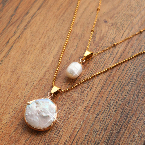 BQ Perles d'eau douce breloque asymétrique Doré-Blanc naturel