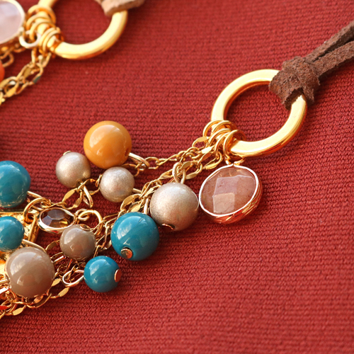 Incontournable dans la création de bijoux, les perles en verre sont des perles polyvalentes qui peuvent être utilisées pour tout type de bijoux. Cette fois-ci nous avons utilisé ces magnifiques perles pour la création des bijoux bohèmes, à savoir deux longs colliers et des boucles d'oreilles assorties. Les colliers longs ont été réalisés en simili cuir daim avec un anneau fermé en métal DQ qui vous permet d’y raccorder de la chaîne maille jaseron avec des perles en verre, des pendentifs en verre Crystal glass et des perles à facettes goutte. Nous avons également fait quelques boucles d’oreilles assorties aux colliers.