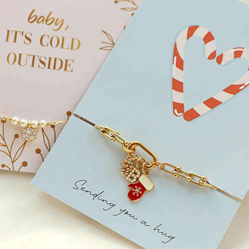 Cartes à bijoux "Baby, it's cold outside" Rose clair