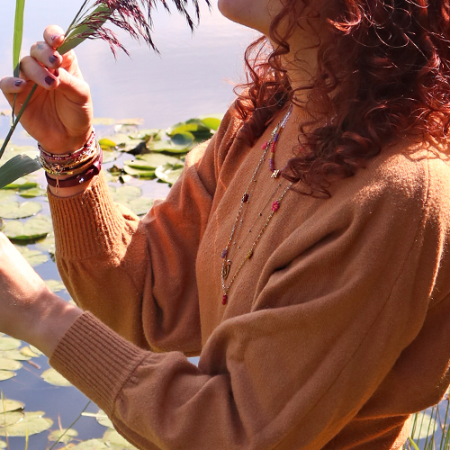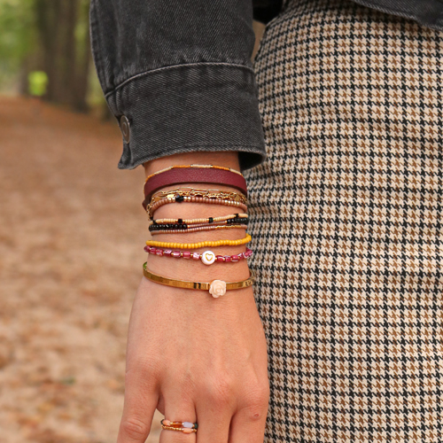 Vous pouvez créer des petits ensembles d’une multitude de manières. Mais vous confectionnerez les plus beaux ensembles en combinant différentes sortes de perles. Pour cette série d’automne, nous avons travaillé avec des perles Miyuki, des rocailles, des perles à facettes et des perles coquillage. Vous pouvez facilement enfiler une association de ces perles sur du fil élastique. Veillez à choisir des couleurs qui s’harmonisent bien entre elles. C’est la meilleure manière de créer un magnifique ensemble. N’oubliez pas d’utiliser du jaseron ou des perles en acier inoxydable, par exemple. Vous pouvez confectionner un long collier assorti en jaseron et le décorer de fleurs composées de perles de rocailles. Vous pouvez également enfiler sur du fil métallique un collier composé de différentes perles aux couleurs tendance de cette saison !