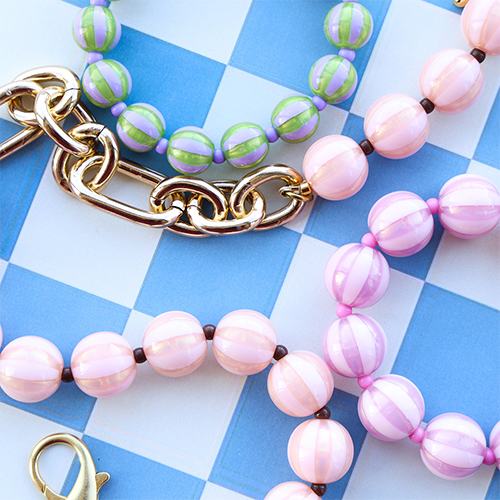 Tendance du moment ! Nos célèbres perles acryliques DQ sont désormais disponibles à rayures et en 12 mm et 16 mm. Ce qui les rend si spéciales, c'est qu'elles sont teintées dans la masse. Cela garantit une couleur de haute qualité et une décoloration minimale, permettant à vos clients de profiter plus longtemps de leurs créations. Intégrez-les dans des bracelets élastiques ou combinez-les sur du fil métallique pour créer des colliers et proposer une collection estivale rafraîchissante.