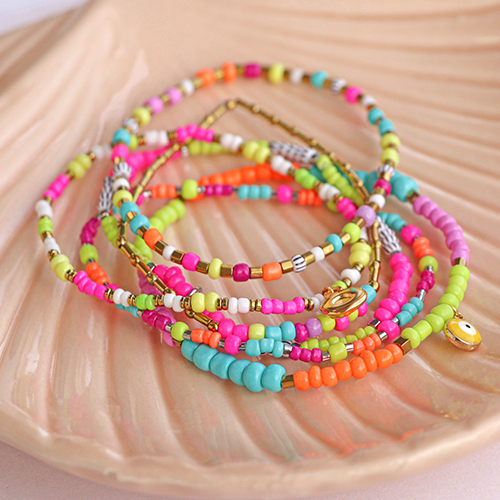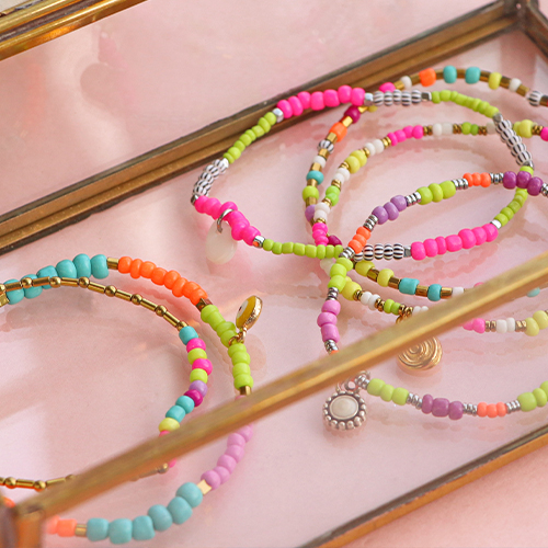 Cette série de perles de rocailles est très populaire grâce aux jolis tons néon qui sont la tendance cet été ! A l’aide du fil élastique et de la colle à bijoux, vous réaliserez de jolis bracelets. Servez-vous de rocailles de différentes tailles et combinez celles-ci avec des perles hématites pour un collier fun. Pour créer des cordons à lunettes de soleil, vous pouvez utiliser du fil macramé. Enfilez des perles sur un fil et puis tordez plusieurs fils jusqu’à l’obtention de la bonne longueur.