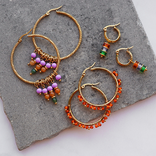 Ces créoles en acier inox sont idéales pour créer des boucles d’oreilles personnalisées. Utilisez différentes perles, comme des perles en verre ou des rocailles Preciosa que vous transformez en breloque à l’aide d’un clou à tête plate et d’une paire de pince ronde. Accrochez-les aux créoles ou utilisez du fil Artistic Wire pour attacher les perles aux créoles. Vous pouvez également utiliser des breloques prêtes à l’emploi ou les mailles d’une chaîne acrylique pour un résultat tendance.