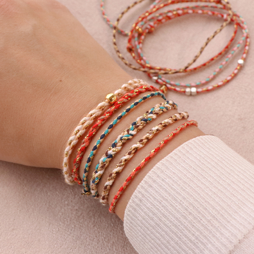 Cordon tressé tendance 2mm Doré-orange rouge blanc