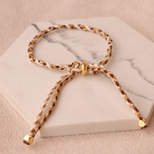 Cordon tressé tendance 2mm Doré-marron