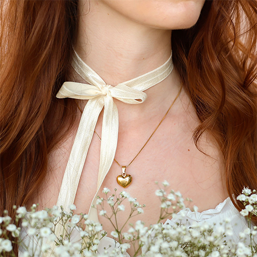 Sachet à bijoux en organza 9x12cm coeur Pêche-doré