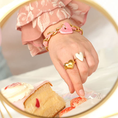 Bagues en acier inox émaillées coeur Rose clair nacré-Doré