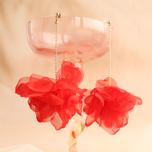 • Boucles d'oreilles tendance fleur en mousseline Rouge-doré