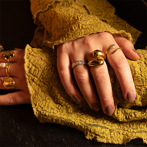 • Bagues en acier Inox gouttes Doré