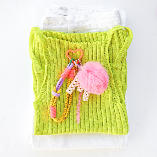 • Apprêts colorés anneau porte-clés coeur Violet-jaune