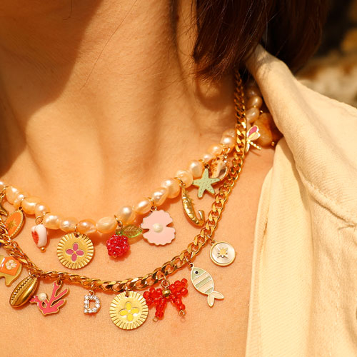• Apprêts en acier inox chaînette d'extension médaillon rond 6mm doré