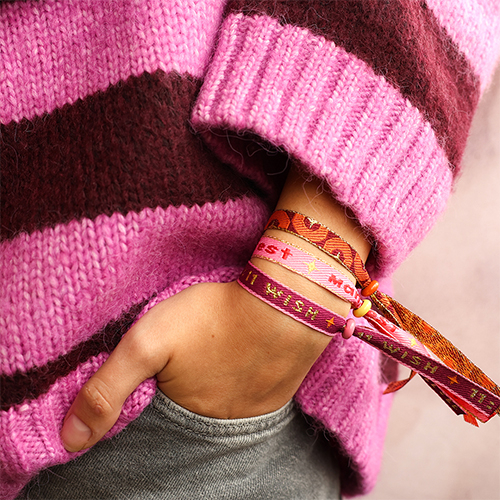Ruban texte "Love" Bleu turquoise-rose-rouge-doré
