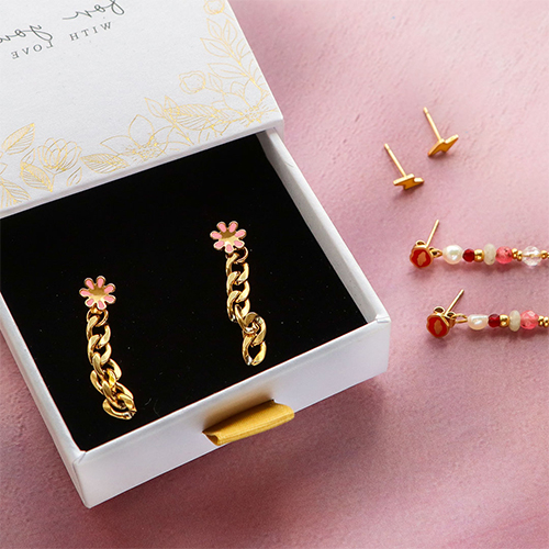 Vous souhaitez utiliser vos boucles d’oreilles prêtes à l’emploi comme base pour votre collection de boucles d’oreilles ? Utilisez le petit papillon à l’arrière des boucles et accrochez-y une breloque faite maison ou une chaîne maille jaseron. Cela donnera à vos boucles d’oreilles un nouveau look ! Utilisez des pierres naturelles facettées, des perles d’eau douce, des perles en acier inox et des clous à tête ronde et mettez-vous au travail. Vous pouvez aussi concevoir des boucles avec une chaîne maille jaseron fine ou épaisse.