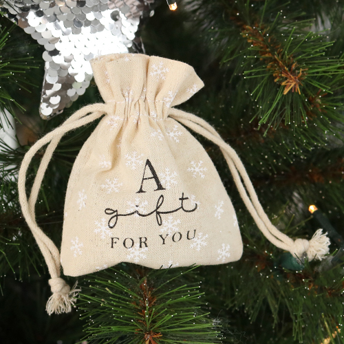 Sachet à bijoux en lin "a gift for you" Blanc cassé