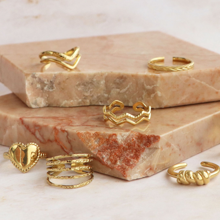 Découvrez notre toute nouvelle série de bagues en acier inoxydable, composée de bagues élégantes et tendance ! Disponibles en doré et en argenté, elles complètent parfaitement votre collection de bagues. Elles peuvent être portées seules, entre elles ou combinées avec vos propres créations