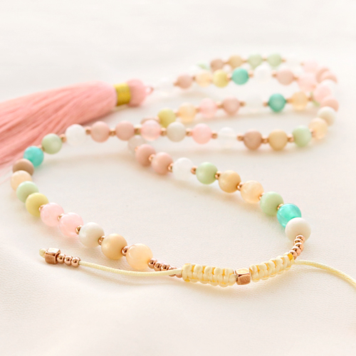 Avec les perles Polaris Elements, vous pouvez confectionner une multitude de bijoux différents. Vous pouvez, par exemple, les combiner avec du fil macramé et des perles et breloques en métal DQ pour confectionner un long collier. Vous pouvez enfiler les perles sur le fil macramé et faire un nœud après chaque perle. Vous créerez ainsi, de manière très simple, un effet absolument spectaculaire. En fermant le collier avec un nœud coulissant, vous créez un bel ensemble qui peut également être ajusté en longueur. Il va sans dire que vous pouvez également enfiler les perles sans faire de nœuds et alterner les perles Polaris Elements avec des perles en métal DQ ou des perles à facettes. Accrochez au collier de belles breloques ou, pourquoi pas, un pompon pour un look très estival.