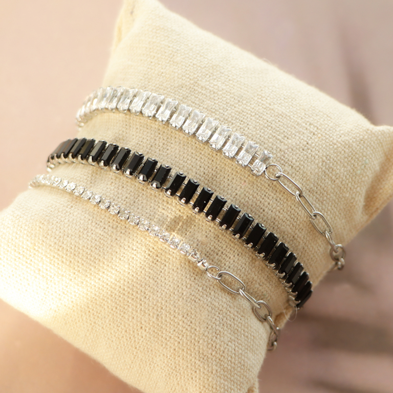 Les différents bracelets et colliers de cette série peuvent être joliment combinés entre eux. Présentez ces bijoux prêts à l’emploi par couleur ou choisissez plusieurs couleurs assorties qui peuvent être portées ensemble. Utilisez des coussins en velours pour faire ressortir encore plus les bijoux !