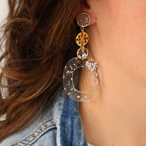 Vous n’avez pas beaucoup de temps, mais vous aimeriez faire un effet incroyable ? Alors, il vous faut des pendentifs en résine. Ces magnifiques pendentifs se fixent et s’assemblent facilement et rapidement à l'aide d'un anneau brisé. En collant un petit pendentif sur une boucle d’oreille clou vous obtenez immédiatement une boucle d’oreille compacte ! Vous voulez cependant que vos boucles d'oreilles soient plus attrayantes ? Utilisez alors un support boucle d'oreille en Polaris Steel ou une pièce intermédiaire couleur or. Amusez-vous bien !